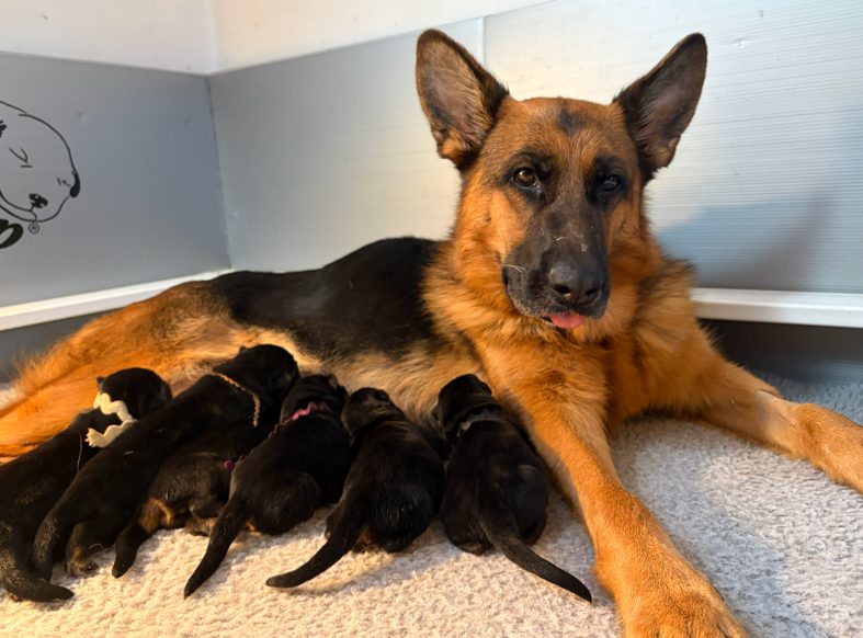 Her pup’s new owners often stay in contact with me and report their puppy’s progress. They confirm my reason to breed, commenting on the great pleasure they receive both in perfection to the SV (German Club) standard, “everyone comments on how beautiful my dog is”. Others say, “what wonderful courage, temperament, intelligence, it is amazing how well behaved, and how fast my puppy learns to do what I ask”, and especially puppy’s lively pleasing personality.